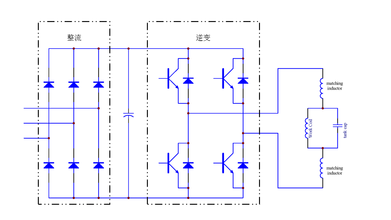 高頻感應加熱設備是高頻電源應用的一種,他的主要應用有:1、熱成型(熱鍛、透熱成型、熱軋、熱鐓);2、焊接(釬焊、熱配合、熱熔合);3、熱處理(淬火、退火、回火、調質);4、熔煉(金、銀、銅、鐵及不銹鋼等各種金屬)。高頻感應加熱設備的原理是靠內部IGBT的開關來控制其發出高周波的大電流流向被繞制成環形狀態或需要的形狀的加熱感應線圈。由高周波感應線圈內產生極性瞬間變化的強大磁束,將需要熱處理的金屬放置在高頻線圈內,磁束就會貫通整個被加熱的金屬物體。在感應加熱物體的內部與感應加熱電流相反的方向,產生相對應的強大渦電流。因為感應加熱的金屬內存在電阻,因此產生強的焦耳熱能,使感應加熱物體物體溫度迅速上升,從而達到熱處理的目的。
