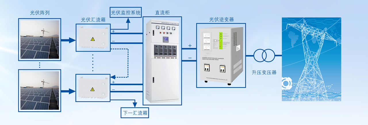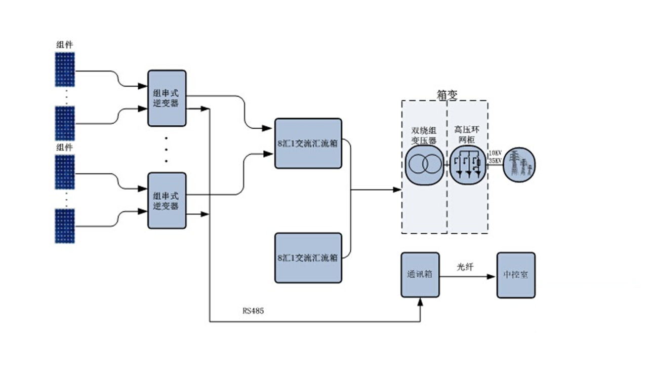 分布式光伏發(fā)電系統(tǒng)的基本設備包括光伏電池組件、光伏方陣支架、直流匯流箱、直流配電柜、并網(wǎng)逆變器、交流配電柜等設備,其中逆變器是將直流電轉換成交流電的設備。有太陽輻射的條件下,光伏發(fā)電系統(tǒng)的太陽能電池組件陣列將太陽能轉換輸出的電能,經(jīng)過直流匯流箱集中送入直流配電柜,由并網(wǎng)逆變器逆變成交流電供給建筑自身負載,多余或不足的電力通過聯(lián)接電網(wǎng)來調節(jié)。