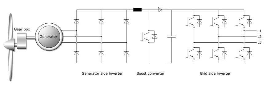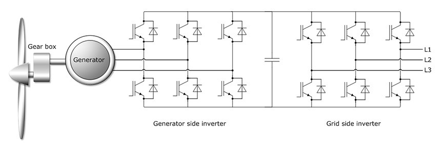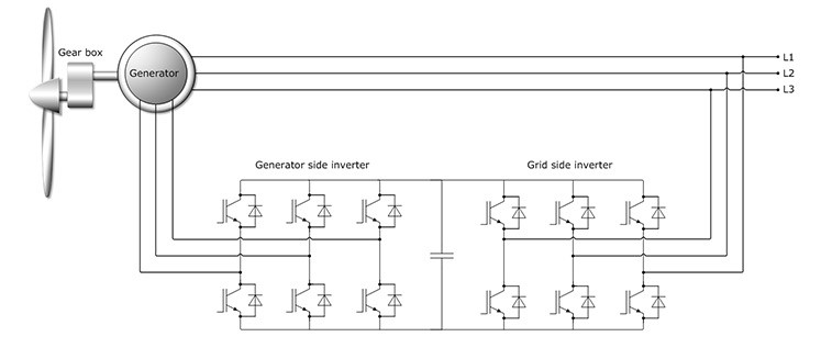風能發電主要是通過風力渦輪發電機來發電,產生的非固定頻率的交流電,但這種非固定頻率交流電達不到入網指標要求,須進行AC-DC-AC的變頻轉換才能實現安全入網。而實現這兩種入網要求均需要功率變換器件。
